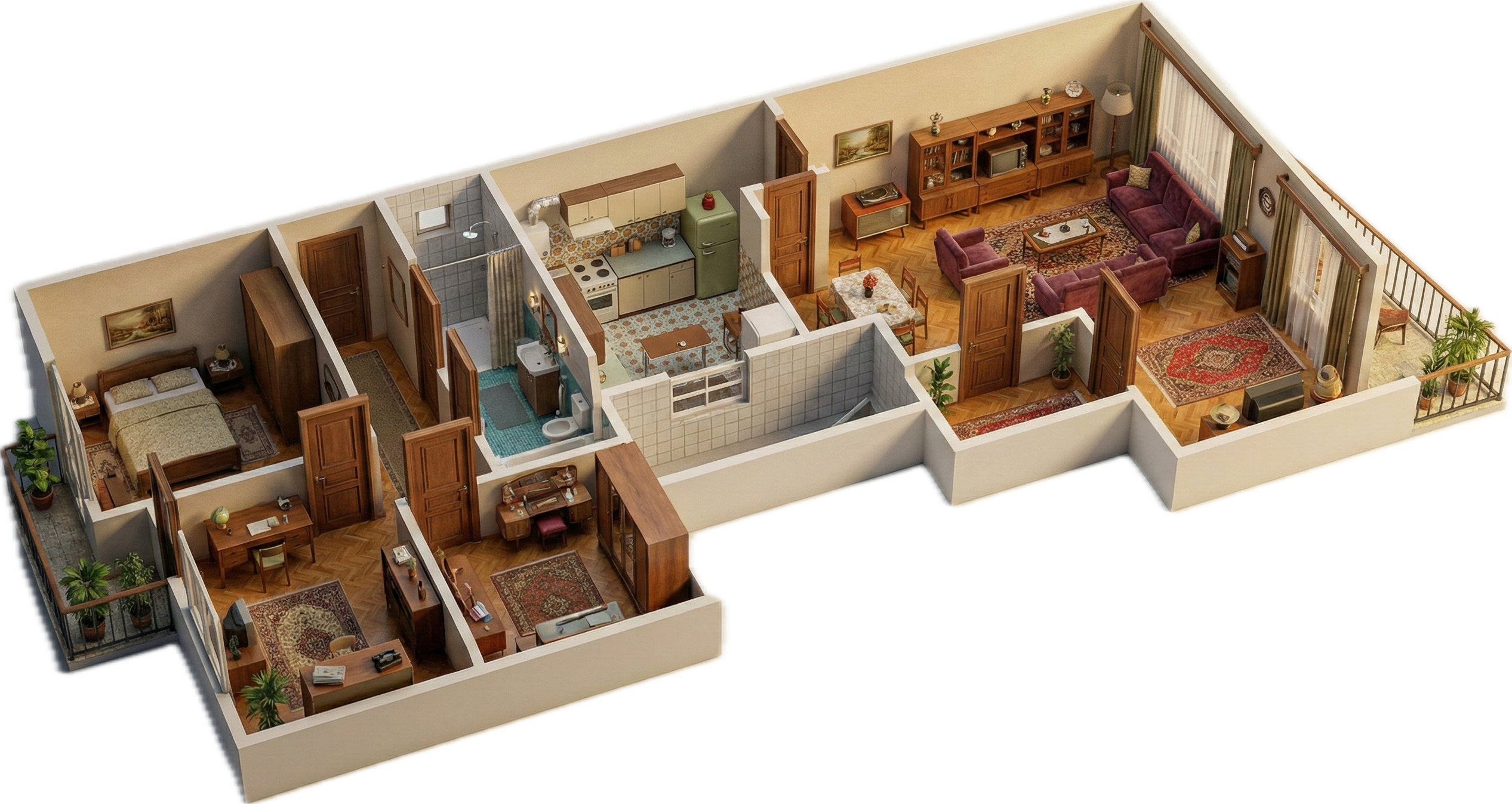 Her oda, 60'ların gündelik yaşamından farklı bir hikaye anlatıyor